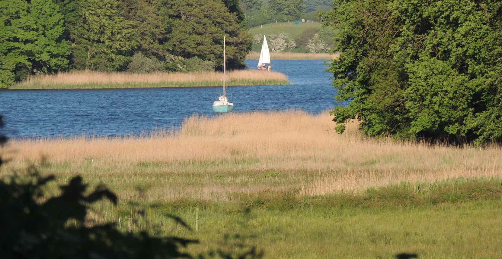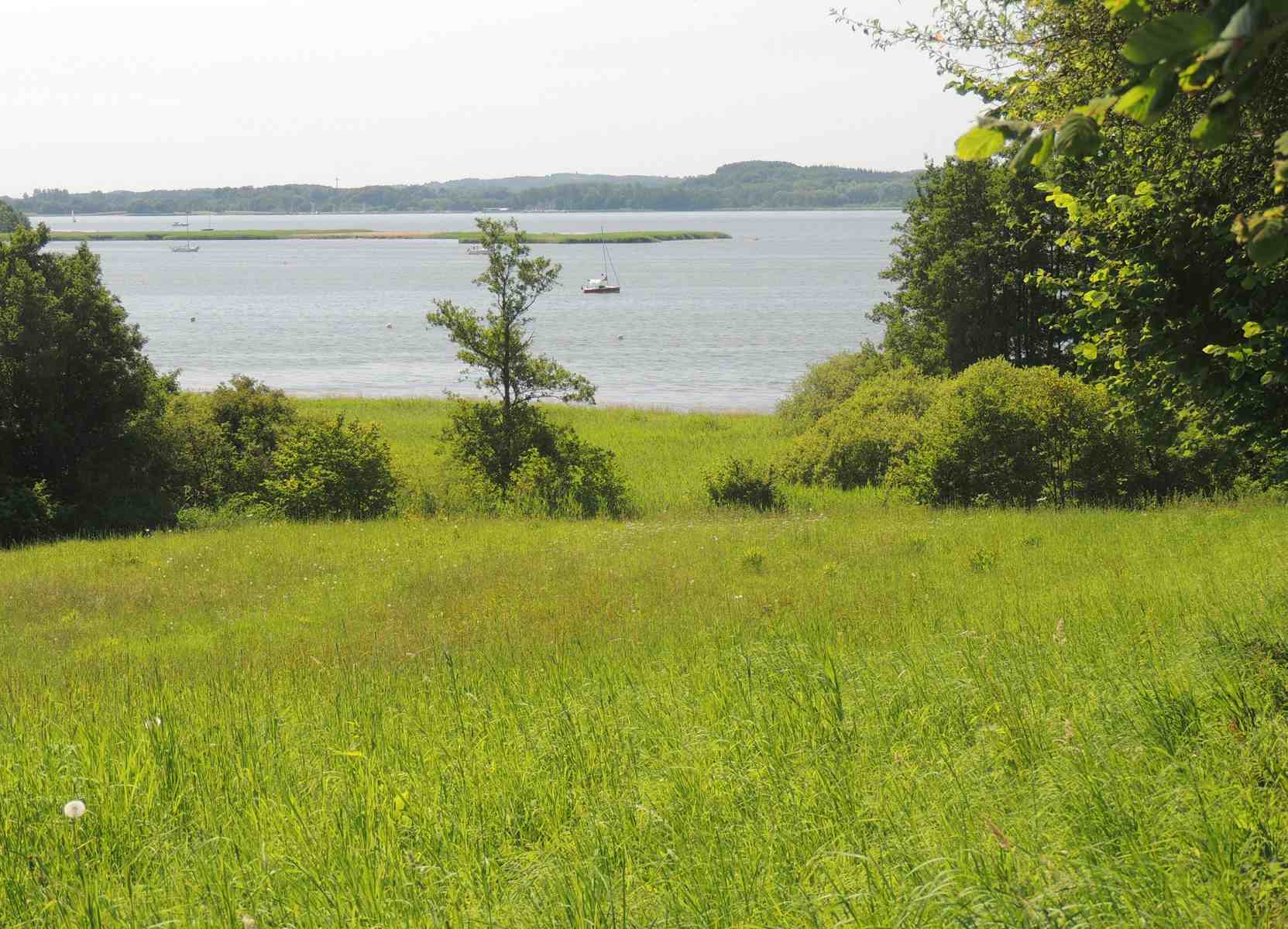 Unsere historische Hofanlage befindet sich am Dorfausgang von Brodersby in Richtung Missunde. Die Hofanlage besteht aus zwei reetgedeckten Häusern und einer Fachwerkscheune auf einem 5.000m² großen Naturgrundstück. Das 400 Jahre alte Haupthaus ist ganzjährig fest vermietet. Das ehemalige „Abnahmehaus“ wurde 2017 kernsaniert und als Ferienhaus ausgebaut. Von beiden Häusern haben Sie einen herrlichen Panoramablick über Wiesen - auf denen im Sommer Rinder und ihre Kälber weiden - auf die Schlei.