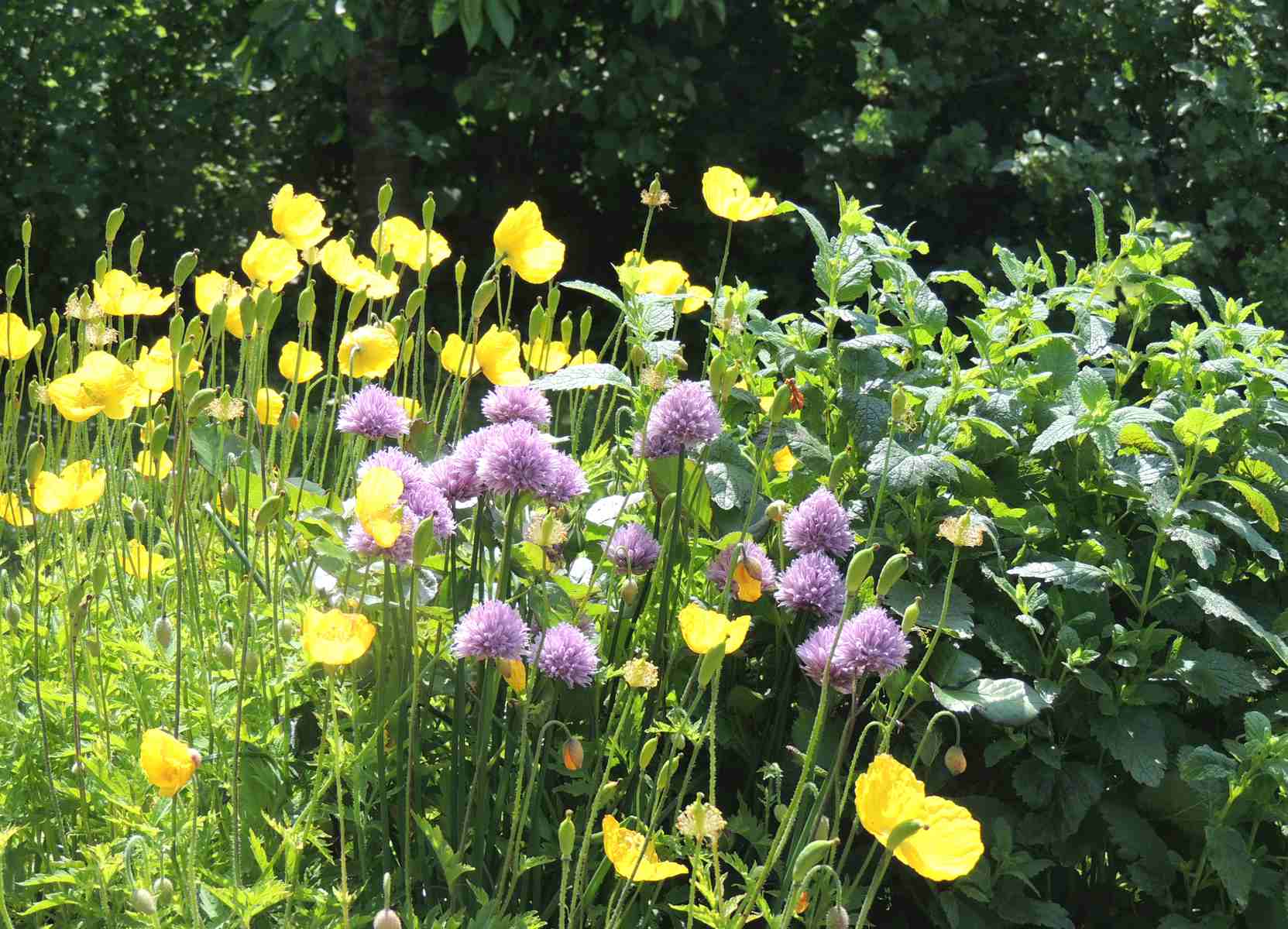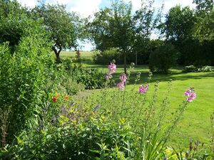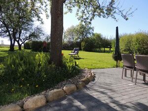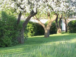 Es stehen genügend überall verteilte Gartenmöbel zu Ihrer Verfügung, auch können Sie in einer Hängematte zwischen alten Obstbäumen träumen. Die Süd-West-Terrassen liegen direkt am Haus und sind barrierefrei zu erreichen.